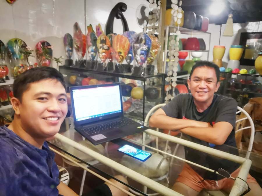 Above: Joel, Anna, and Arnel during the announcement of winners at the DTI YEP at Park Inn by Radisson Bacolod. Below: Our coaching session at my gallery, Jojo Vito Designs Gallery, as they prepare their business ideas for the DTI YEP regional competition.
