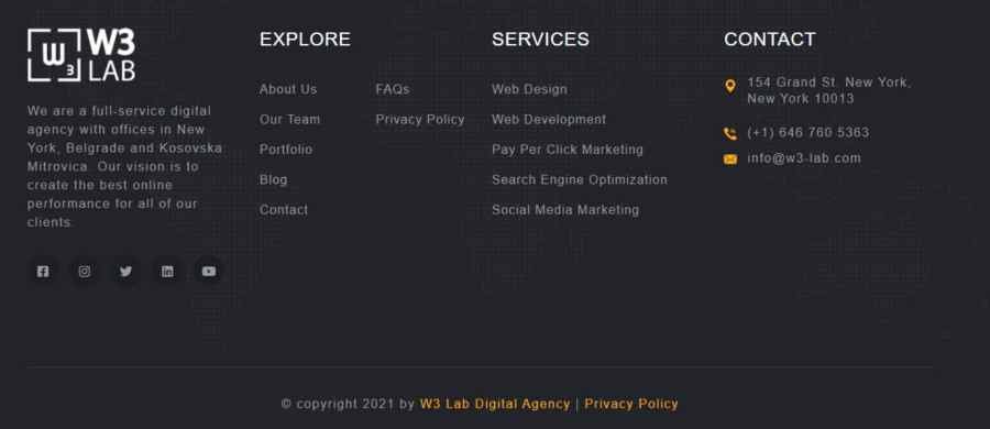 The footer section of your website is often overlooked but serves as an important area for providing essential information and quick links. Including elements such as: