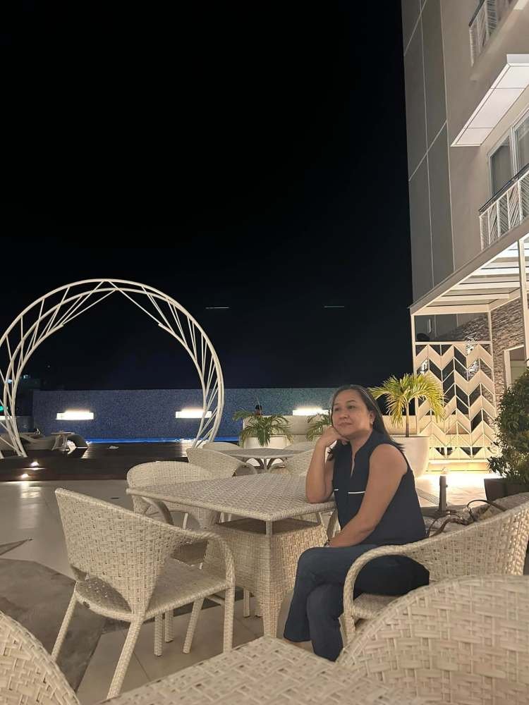 While waiting for our food, Jojo Bayona and I decided to check out the lobby, while Lei Lani stayed back to book hotels for her upcoming trip abroad. The lobby is quite simple, lined with designer chairs from Cebu City. The front office is also very basic, but I was delighted to see Paul, my former student from LCC, working as the front office supervisor. The lobby’s minimalist design was clean and inviting. It provided a comfortable space to relax and explore. Seeing a familiar face made our visit feel even more welcoming.